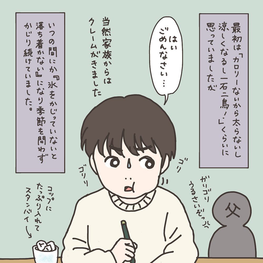 氷食症について、今まで恥ずかしいことだと思って人に言ったことはなかったのですが、同じような悩みを持つ方の参考になるかもしれないので思い切って描いてみました。
