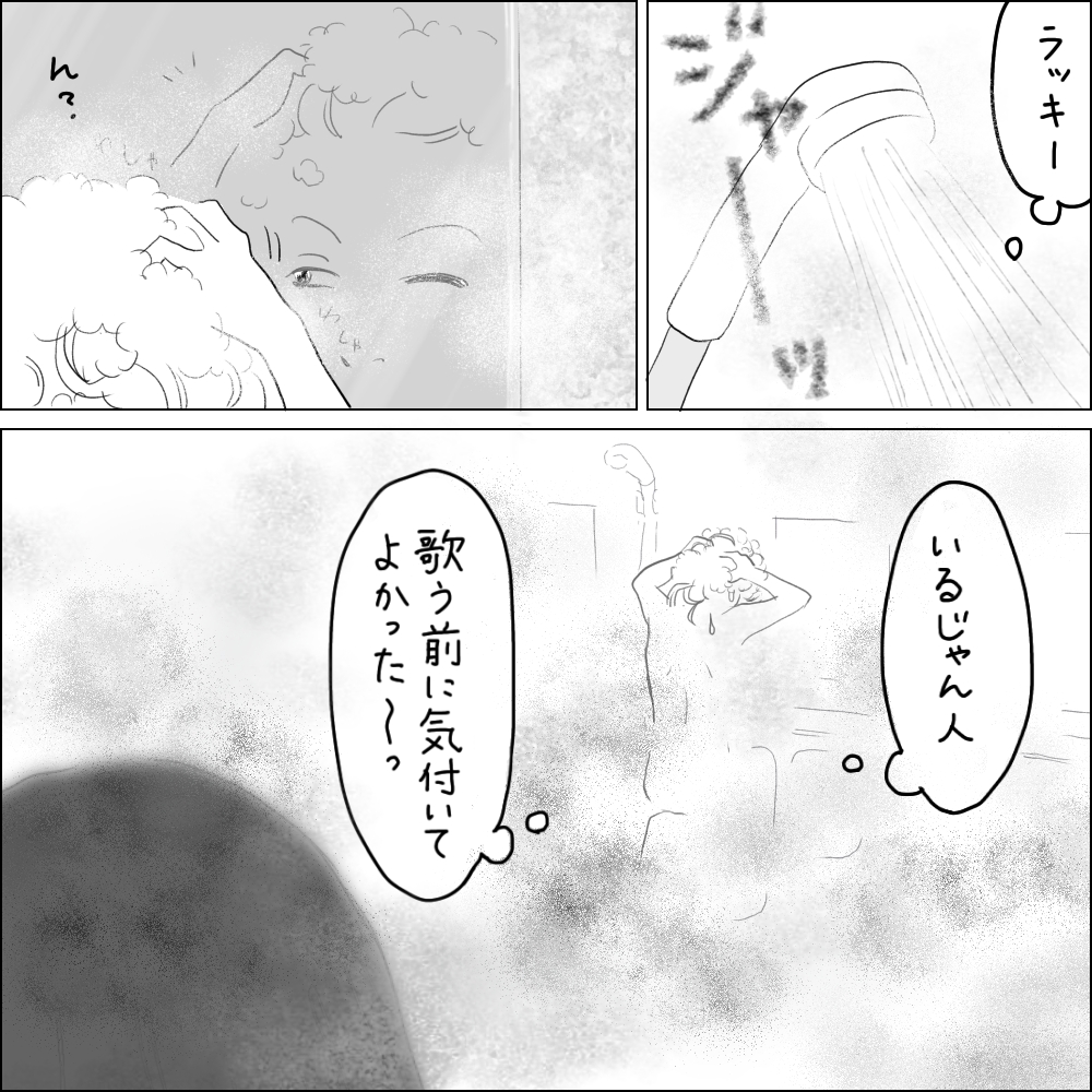 シャワーを浴びている時、温泉に浸かっている時はずっとこの人(?)が視界に入っていて、ナオさんはむしろ「あー私のほかにも誰かいるなー!(深夜だけど)心細くないなー!」と思っていたそうです。