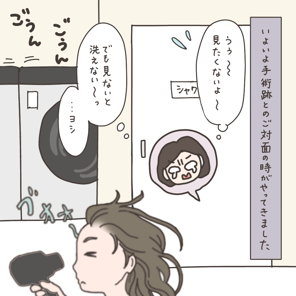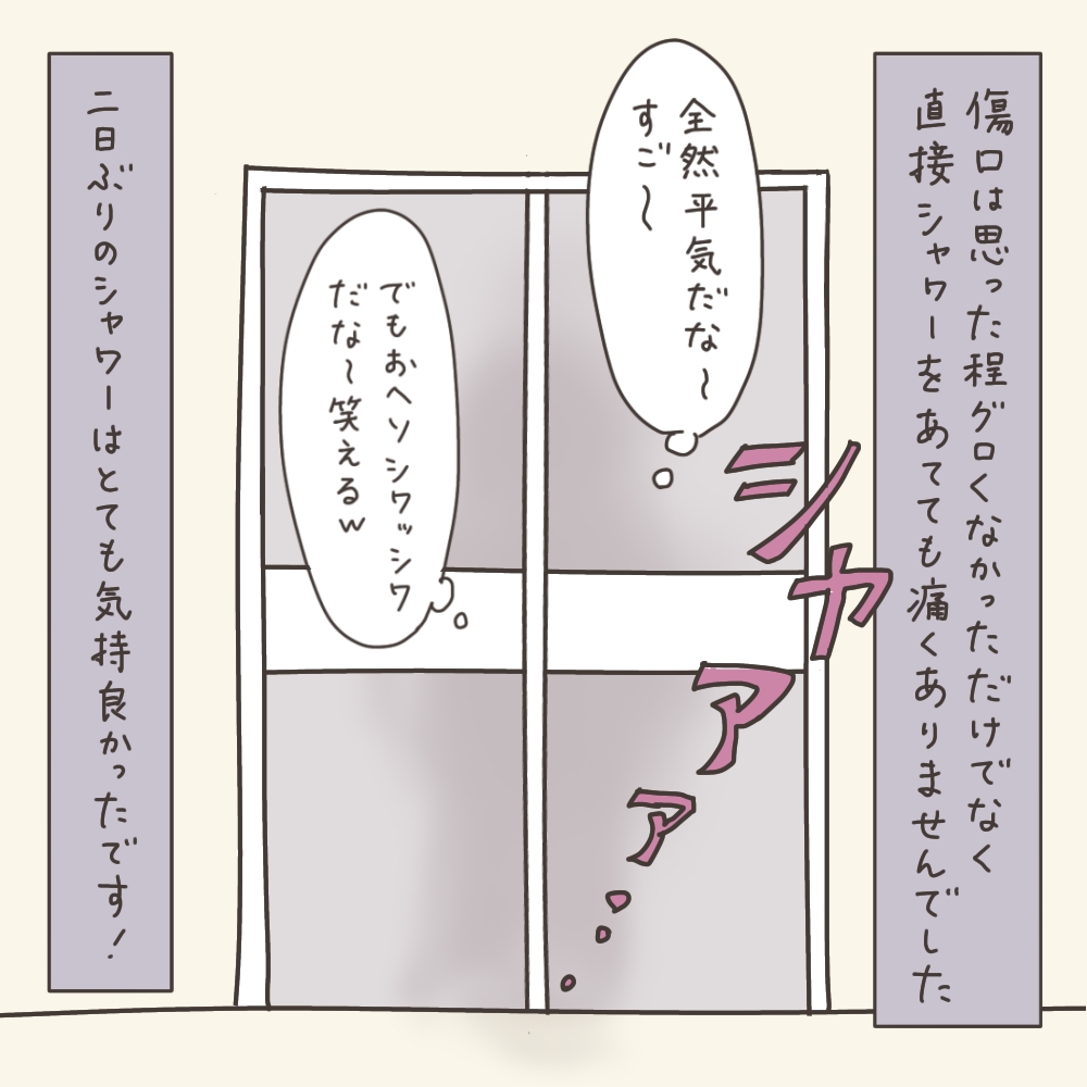 嬉しいけど、傷と向き合わなければと思うと微妙な気持ちのシャワータイムです。