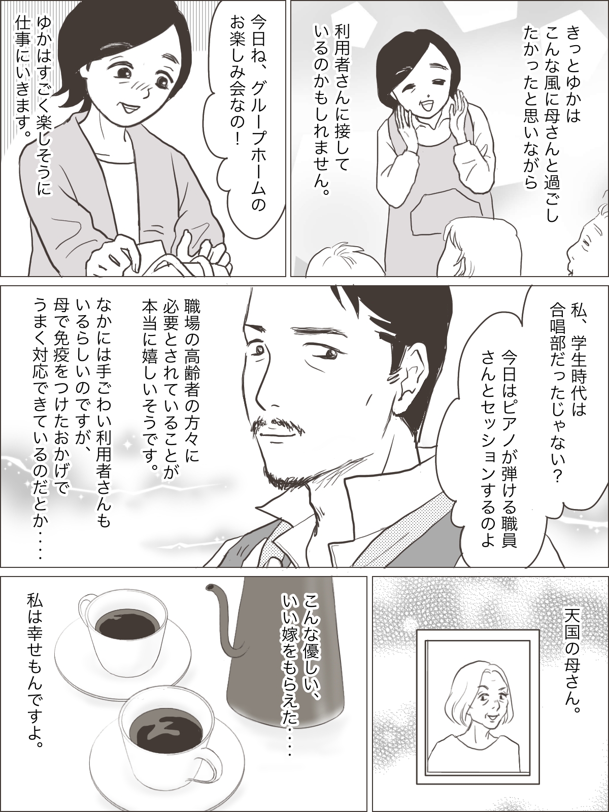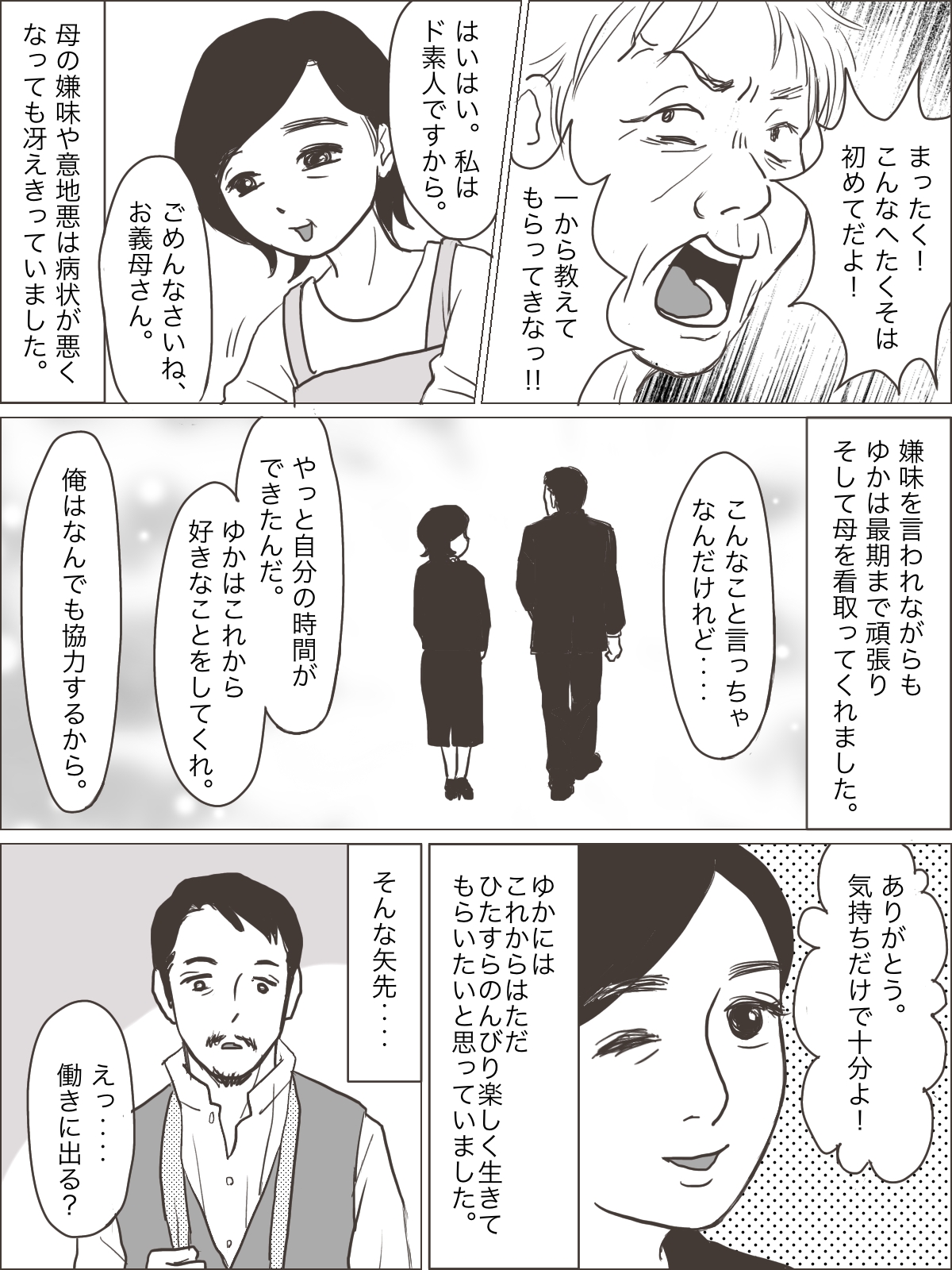 本日はママスタセレクトさんで描かせていただいた介護問題のエピソード漫画、全5話の最終話です。