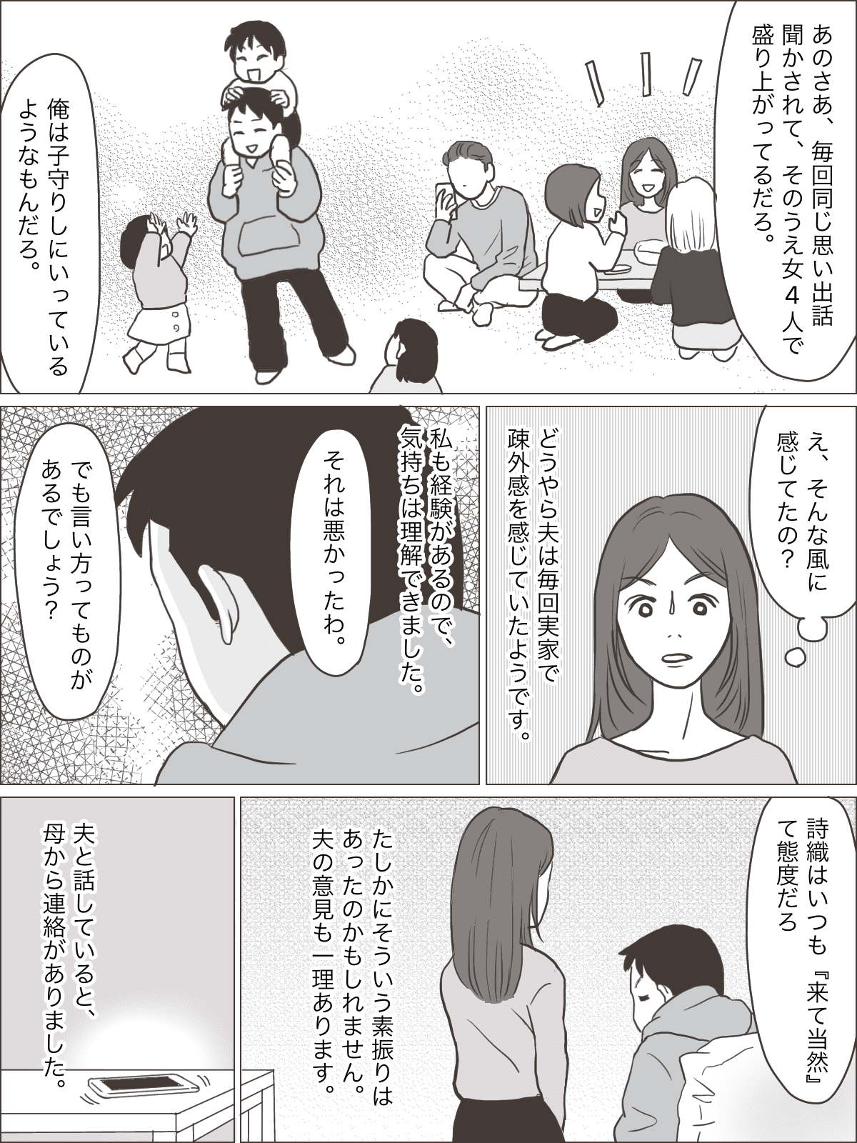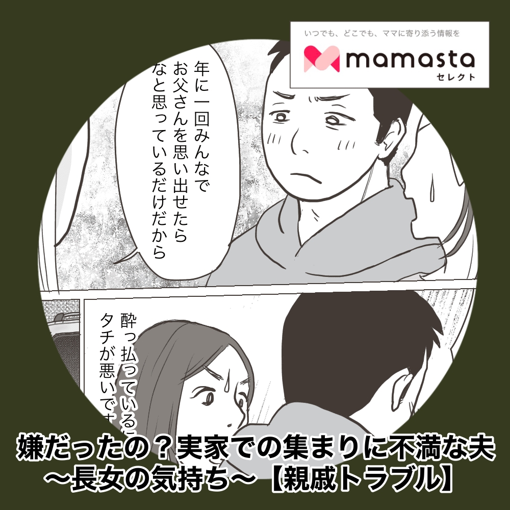 <親戚トラブル>「イヤだと感じていたの?」実家での集まりに不満な夫【第2話:長女の気持ち】【ママスタセレクト転載】