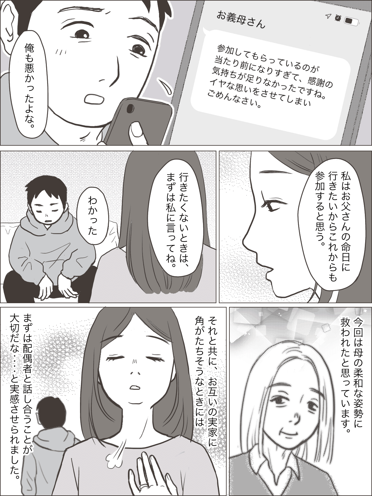 それと共に、お互いの実家に角がたつようなやりとりがあったときには、まずは配偶者と話し合うことが大切だな……と実感させられました。