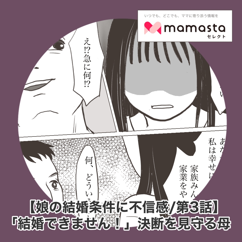 【娘の結婚条件に不信感/第3話】「結婚できません!」決断を見守る母【ママスタセレクト転載】