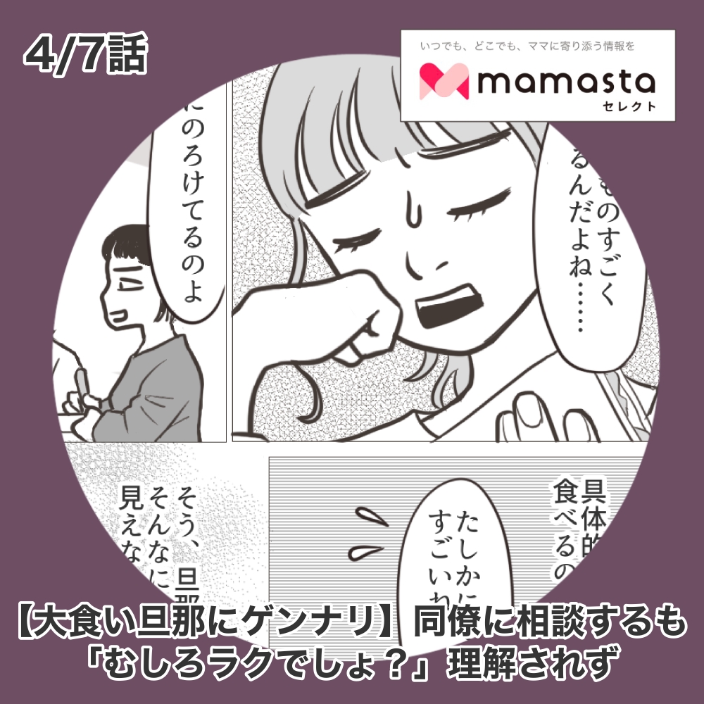 <大食い旦那にゲンナリ>同僚に相談するも「肉と米だけならラクでしょ?」理解されず/第4話【ママスタセレクト転載】