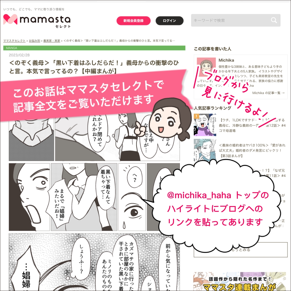 こちらのお話はママスタセレクトで連載中です。