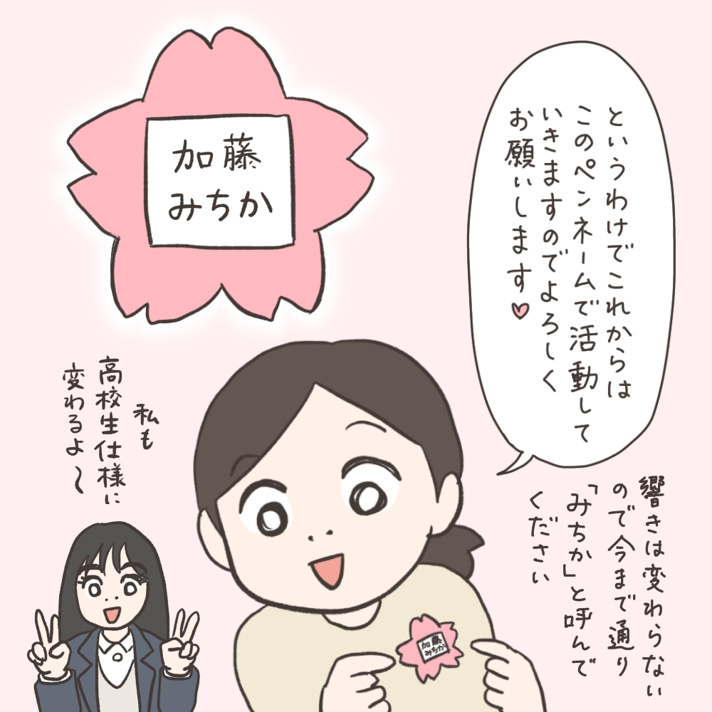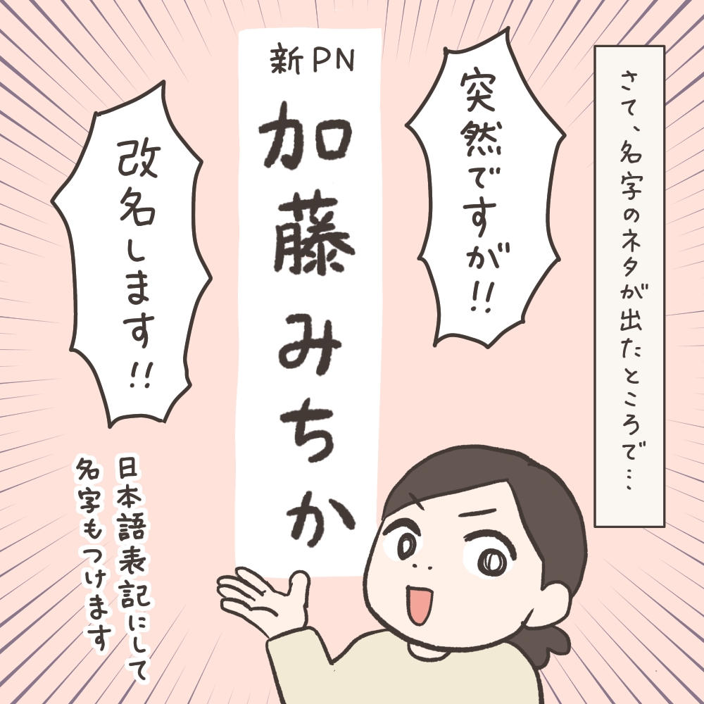 今までのローマ字表記『Michika』だと、漫画の中で縦書きするときに不便だったりして、前々から検討していたんですよね。