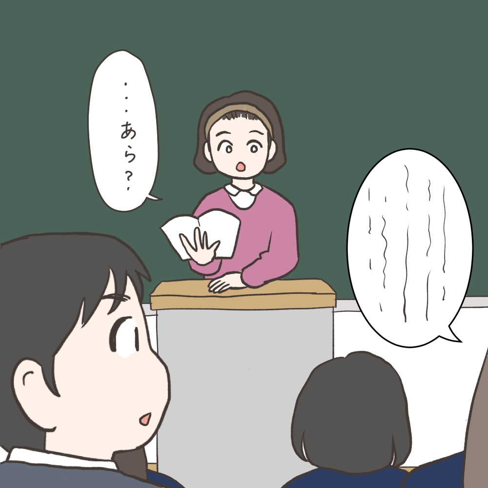 合同授業はあまりないし、名簿上ではクラスが違うので並んでいなくて、先生も気付かなかったのでした。