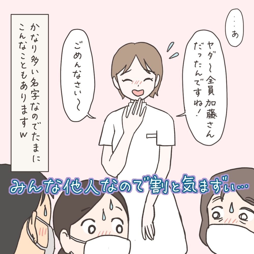 待合室などで『加藤さん』が2人いることはもう前提にしているくらい当たり前なのですが、3人、しかもその場にいる全員が『加藤さん』だったのは、このときだけです。今のところ。