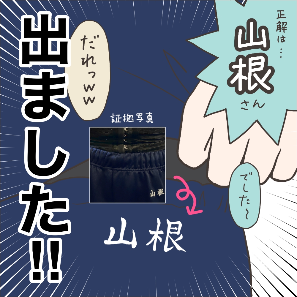 『長女がもらったお下がりのジャージに入っていた名字は?』というクイズを出させていただきました。