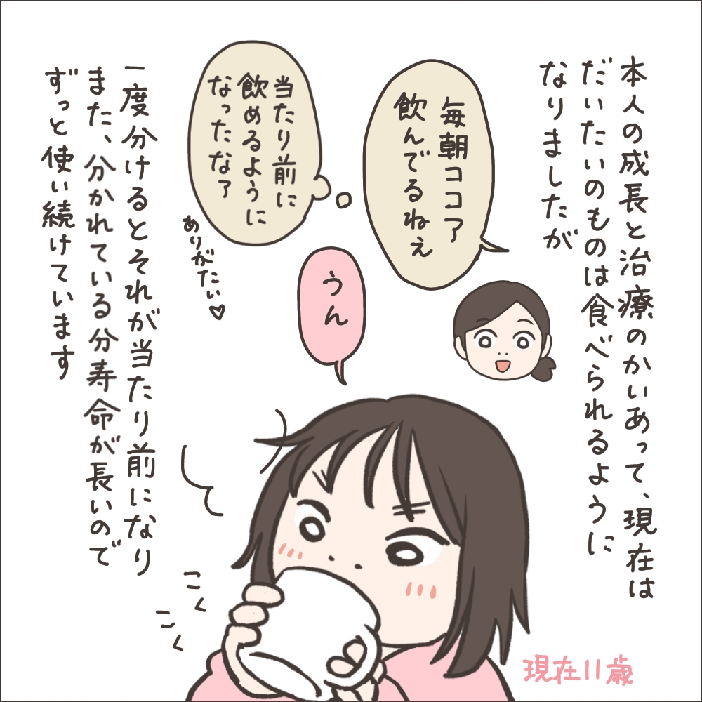 現在はココアも好きだし、コーンフレークも牛乳をかけてよく食べています。