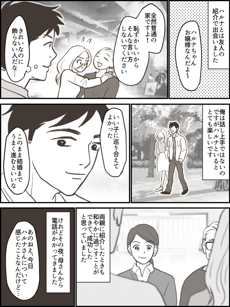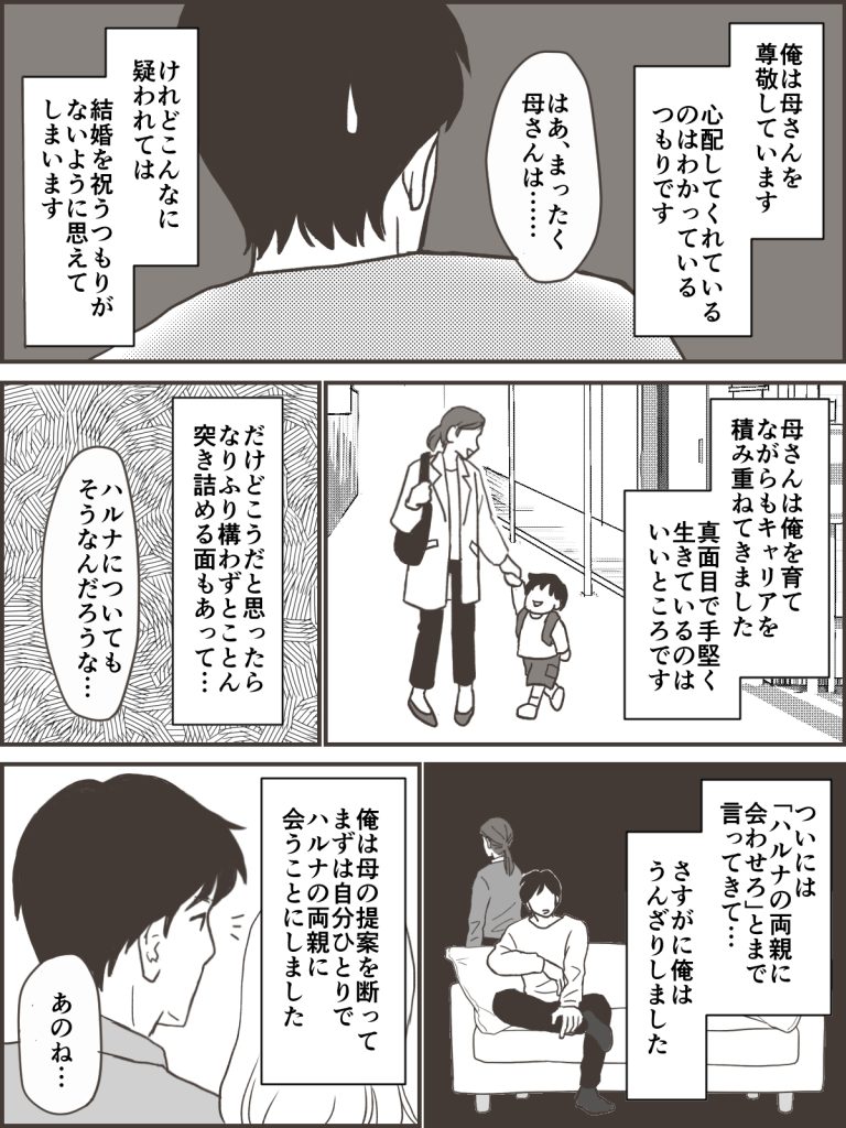 先日俺の両親に紹介したのですが、母はハルナに対してあまりよくない印象を抱いているようです。