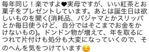 毎年のことだし、いらないかもしれない物を贈るより、消え物にした方がいいのかも?