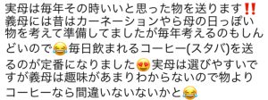 みなさんのコメントを参考にさせていただきながら、義母や家族の性格や状況からも検討し、選んだプレゼントを当日着で送りました。